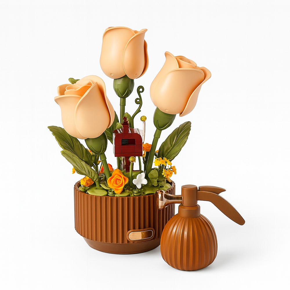 Enjoy a fun LEGO-style building experience with this elegant flower garden, featuring glossy blooms that never fade. A unique and thoughtful gift for any occasion.